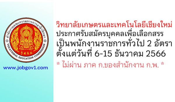 วิทยาลัยเทคนิคเชียงใหม่ รับสมัครพนักงานราชการทั่วไป ตำแหน่งพนักงานบริหารทั่วไป(ครู) กลุ่มวิชาคอมพิวเตอร์ธุรกิจและเทคโนโลยีสารสนเทศ