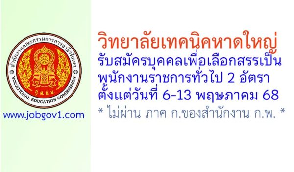 วิทยาลัยเทคนิคพิจิตร รับสมัครพนักงานราชการทั่วไป ตำแหน่งพนักงานราชการทั่วไป (ครู) กลุ่มวิชาการจัดการทั่วไป ตั้งแต่วันที่ 1-8 ธันวาคม 2568