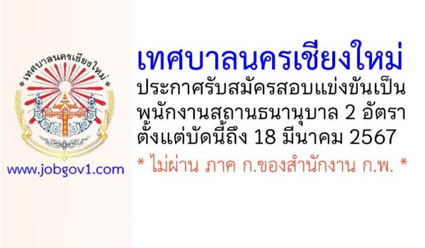 เทศบาลนครเชียงใหม่ รับสมัครสอบแข่งขันเป็นพนักงานสถานธนานุบาล 2 อัตรา ตั้งแต่บัดนี้ถึง 18 มีนาคม 2567