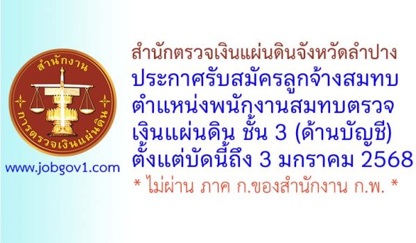สำนักตรวจเงินแผ่นดินจังหวัดกาฬสินธุ์ รับสมัครสอบคัดเลือกเป็นลูกจ้างสมทบ ตำแหน่งพนักงานสมทบตรวจเงินแผ่นดิน ชั้น 3 (ด้านบัญชี) ตั้งแต่บัดนี้ถึง 4 พฤศจิกายน 2568