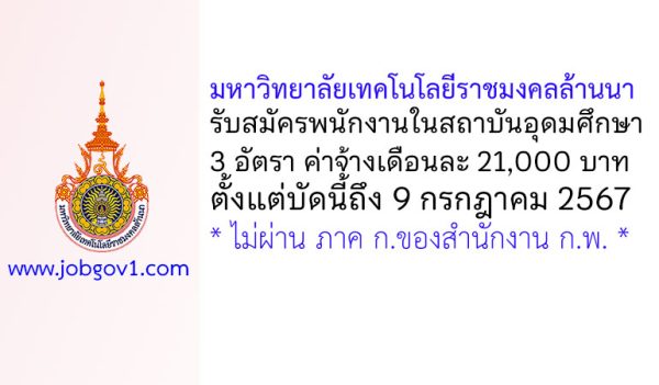มหาวิทยาลัยเทคโนโลยีราชมงคลล้านนา (เชียงใหม่) รับสมัครพนักงานในสถาบันอุดมศึกษา 2 อัตรา
