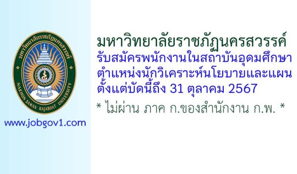 มหาวิทยาลัยราชภัฏนครสวรรค์ รับสมัครพนักงานในสถาบันอุดมศึกษา ตำแหน่งนักวิเคราะห์นโยบายและแผน ตั้งแต่บัดนี้ถึง 31 ตุลาคม 2567