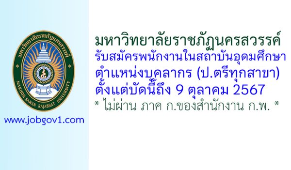 มหาวิทยาลัยราชภัฏนครสวรรค์ รับสมัครพนักงานในสถาบันอุดมศึกษา ตำแหน่งบุคลากร ตั้งแต่บัดนี้ถึง 9 ตุลาคม 2567