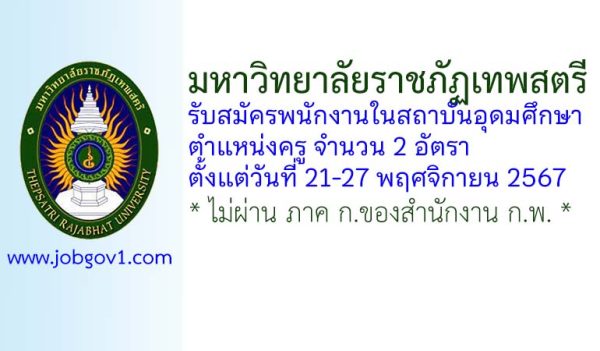 มหาวิทยาลัยราชภัฏเทพสตรี รับสมัครพนักงานในสถาบันอุดมศึกษา ตำแหน่งครู จำนวน 2 อัตรา ตั้งแต่วันที่ 21-27 พฤศจิกายน 2567