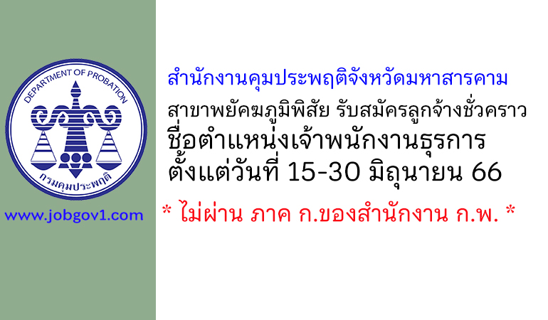สำนักงานคุมประพฤติจังหวัดมหาสารคาม สาขาพยัคฆภูมิพิสัย รับสมัครลูกจ้างชั่วคราว ตำแหน่งเจ้าพนักงานธุรการ