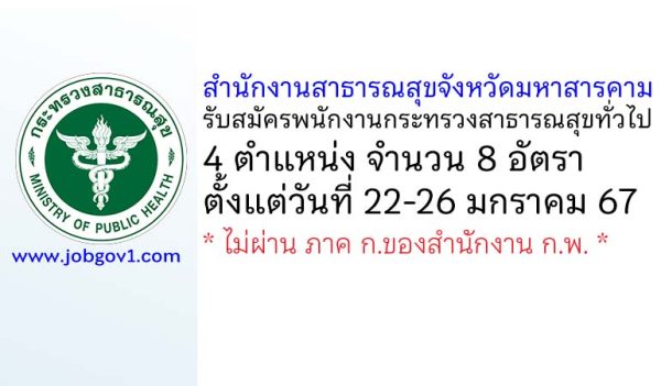 สำนักงานสาธารณสุขจังหวัดมหาสารคาม รับสมัครพนักงานกระทรวงสาธารณสุขทั่วไป 8 อัตรา