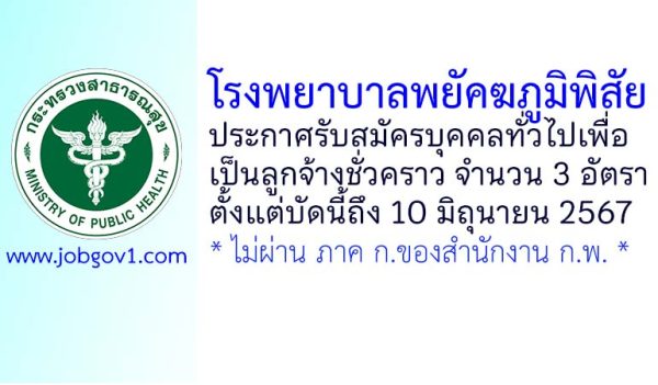 โรงพยาบาลพยัคฆภูมิพิสัย รับสมัครบุคคลทั่วไปเพื่อเป็นลูกจ้างชั่วคราว 3 อัตรา ตั้งแต่บัดนี้ถึง 10 มิถุนายน 2567