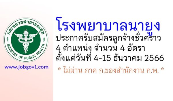 โรงพยาบาลห้วยยอด รับสมัครลูกจ้างชั่วคราว 21 อัตรา ตั้งแต่วันที่ 1-9 ธันวาคม 2568