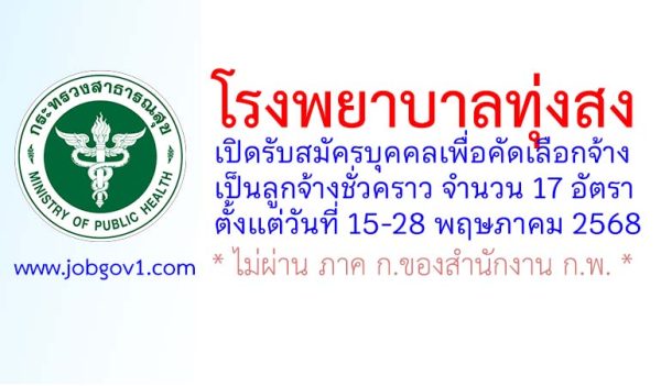 โรงพยาบาลทุ่งสง รับสมัครลูกจ้างชั่วคราว 26 อัตรา ตั้งแต่บัดนี้ถึง 22 ธันวาคม 2568