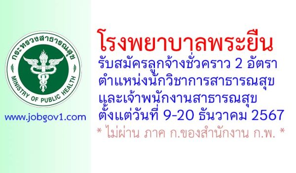โรงพยาบาลพระยืน รับสมัครลูกจ้างชั่วคราว ตำแหน่งนักวิชาการสาธารณสุข ตั้งแต่วันที่ 6-17 มกราคม 2568