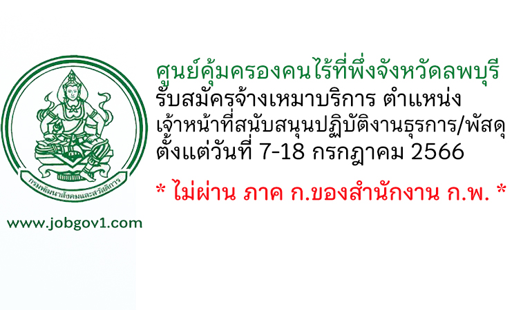 ศูนย์คุ้มครองคนไร้ที่พึ่งจังหวัดลพบุรี รับสมัครจ้างเหมาบริการ ตำแหน่งเจ้าหน้าที่สนับสนุนปฏิบัติงานธุรการ/พัสดุ ตั้งแต่วันที่ 7-18 กรกฎาคม 2566