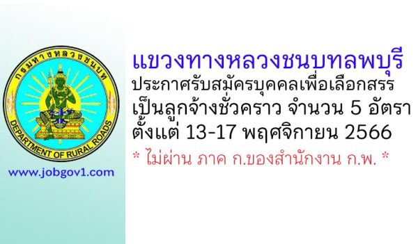 แขวงทางหลวงชนบทลพบุรี รับสมัครบุคคลเพื่อเลือกสรรเป็นลูกจ้างชั่วคราว 5 อัตรา ตั้งแต่วันที่ 13-17 พฤศจิกายน 2566
