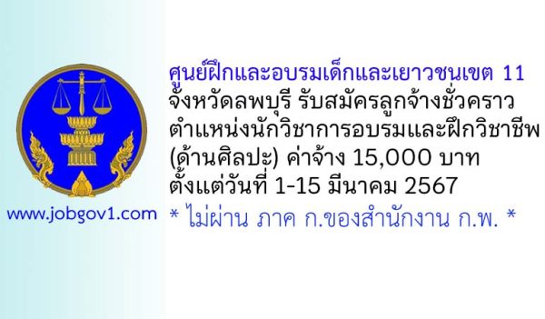 ศูนย์ฝึกและอบรมเด็กและเยาวชนเขต 11 รับสมัครลูกจ้างชั่วคราว ตำแหน่งนักวิชาการอบรมและฝึกวิชาชีพ (ด้านศิลปะ) ตั้งแต่วันที่ 1-15 มีนาคม 2567