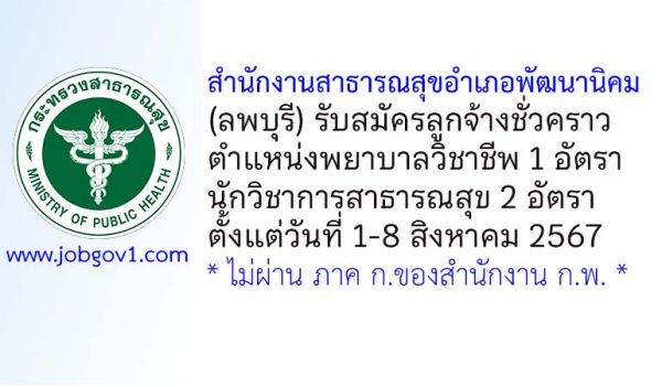 สำนักงานสาธารณสุขอำเภอพัฒนานิคม รับสมัครลูกจ้างชั่วคราว 3 อัตรา ตั้งแต่วันที่ 1-8 สิงหาคม 2567