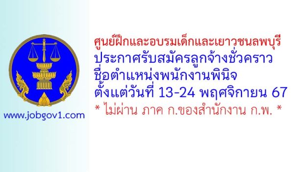 ศูนย์ฝึกและอบรมเด็กและเยาวชนลพบุรี รับสมัครลูกจ้างชั่วคราว ตำแหน่งพนักงานพินิจ ตั้งแต่วันที่ 13-24 พฤศจิกายน 2567