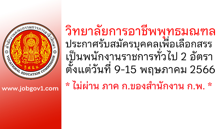 วิทยาลัยการอาชีพพุทธมณฑล รับสมัครบุคคลเพื่อเลือกสรรเป็นพนักงานราชการทั่วไป 2 อัตรา