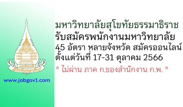 มหาวิทยาลัยสุโขทัยธรรมาธิราช รับสมัครพนักงานมหาวิทยาลัย 45 อัตรา ตั้งแต่วันที่ 17-31 ตุลาคม 2566