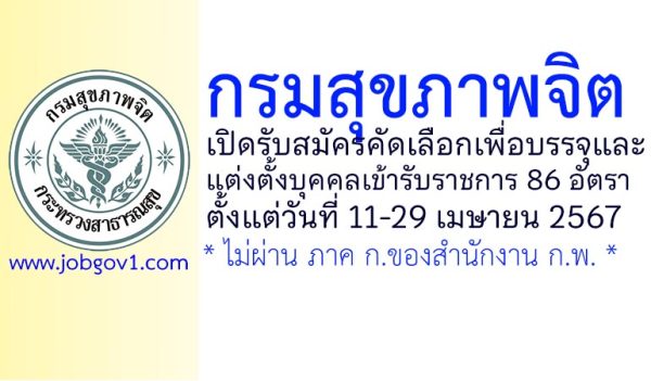 กรมสุขภาพจิต รับสมัครคัดเลือกเพื่อบรรจุและแต่งตั้งบุคคลเข้ารับราชการ 86 อัตรา ตั้งแต่วันที่ 11-29 เมษายน 2567