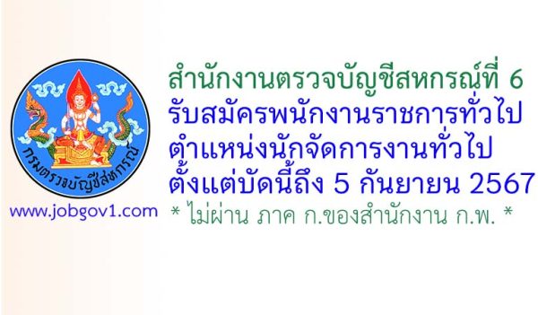 สำนักงานตรวจบัญชีสหกรณ์ที่ 6 รับสมัครพนักงานราชการทั่วไป ตำแหน่งนักจัดการงานทั่วไป ตั้งแต่บัดนี้ถึง 5 กันยายน 2567