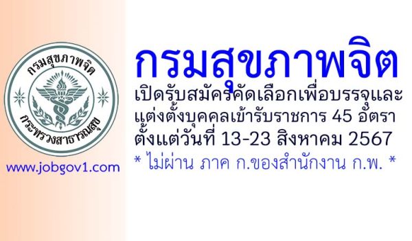 กรมสุขภาพจิต รับสมัครคัดเลือกเพื่อบรรจุและแต่งตั้งบุคคลเข้ารับราชการ 45 อัตรา ตั้งแต่วันที่ 13-23 สิงหาคม 2567