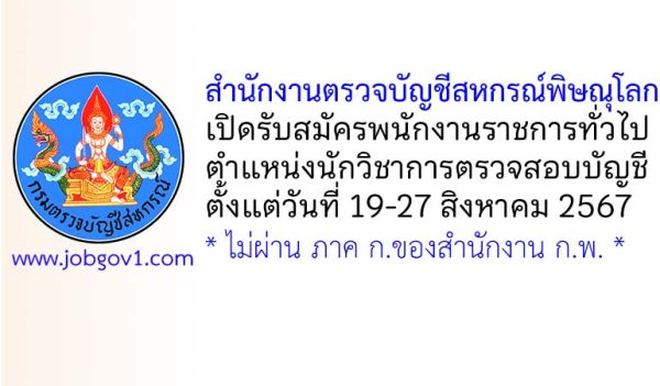 สำนักงานตรวจบัญชีสหกรณ์พิษณุโลก รับสมัครพนักงานราชการทั่วไป ตำแหน่งนักวิชาการตรวจสอบบัญชี ตั้งแต่วันที่ 19-27 สิงหาคม 2567