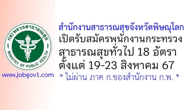 สำนักงานสาธารณสุขจังหวัดพิษณุโลก รับสมัครพนักงานกระทรวงสาธารณสุขทั่วไป 18 อัตรา ตั้งแต่วันที่ 19-23 สิงหาคม 2567