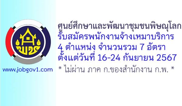 ศูนย์ศึกษาและพัฒนาชุมชนพิษณุโลก รับสมัครพนักงานจ้างเหมาบริการ 7 อัตรา ตั้งแต่วันที่ 16-24 กันยายน 2567
