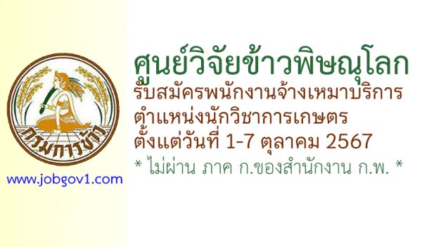 ศูนย์วิจัยข้าวพิษณุโลก รับสมัครพนักงานจ้างเหมาบริการ ตำแหน่งนักวิชาการเกษตร ตั้งแต่วันที่ 1-7 ตุลาคม 2567