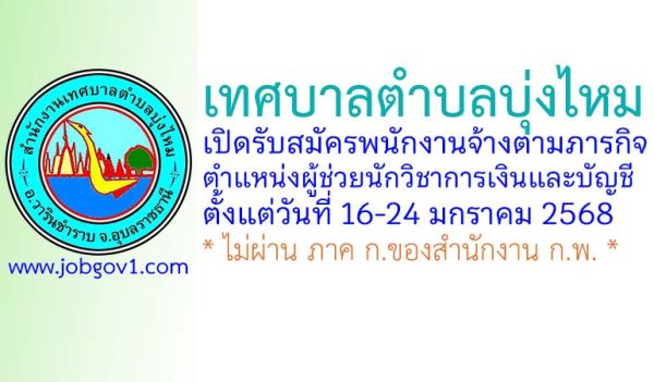 เทศบาลตำบลบุ่งไหม รับสมัครพนักงานจ้างตามภารกิจ ตำแหน่งผู้ช่วยเจ้าพนักงานธุรการ ตั้งแต่วันที่ 8-18 กรกฎาคม 2568