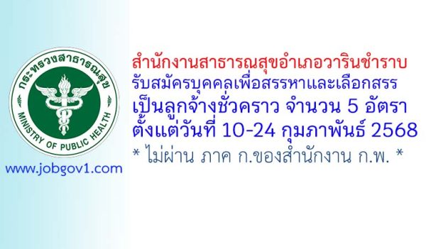 โรงพยาบาลวารินชำราบ รับสมัครพนักงานกระทรวงสาธารณสุขทั่วไป ตำแหน่งนักวิชาการสาธารณสุข 2 อัตรา