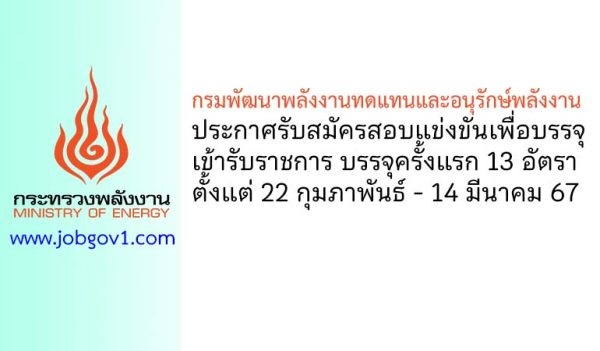 กรมพัฒนาพลังงานทดแทนและอนุรักษ์พลังงาน รับสมัครสอบแข่งขันเพื่อบรรจุเข้ารับราชการ 13 อัตรา