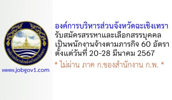 อบจ.ฉะเชิงเทรา รับสมัครสรรหาและเลือกสรรบุคคลเพื่อเป็นพนักงานจ้างตามภารกิจ 60 อัตรา ตั้งแต่วันที่ 20-28 มีนาคม 2567