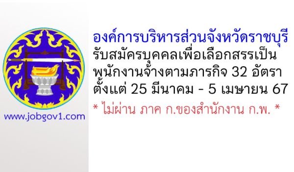 องค์การบริหารส่วนจังหวัดราชบุรี รับสมัครบุคคลเพื่อเลือกสรรเป็นพนักงานจ้างตามภารกิจ 32 อัตรา