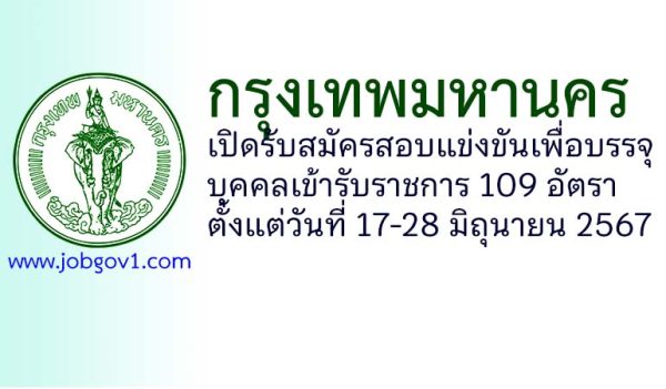 กรุงเทพมหานคร รับสมัครสอบแข่งขันเพื่อบรรจุบุคคลเข้ารับราชการ 109 อัตรา ตั้งแต่วันที่ 17-28 มิถุนายน 2567