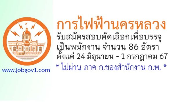 การไฟฟ้านครหลวง รับสมัครสอบคัดเลือกเพื่อบรรจุเป็นพนักงาน 86 อัตรา ตั้งแต่ 24 มิถุนายน – 1 กรกฎาคม 2567
