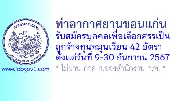 ท่าอากาศยานขอนแก่น รับสมัครบุคคลเพื่อเลือกสรรเป็นลูกจ้างทุนหมุนเวียน 42 อัตรา ตั้งแต่วันที่ 9-30 กันยายน 2567