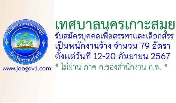 เทศบาลนครเกาะสมุย รับสมัครบุคคลเพื่อสรรหาและเลือกสรรเป็นพนักงานจ้าง 79 อัตรา ตั้งแต่วันที่ 12-20 กันยายน 2567