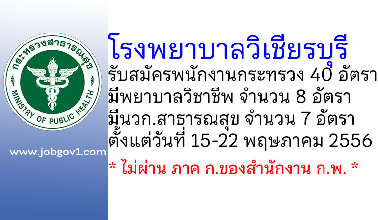 โรงพยาบาลวิเชียรบุรี รับสมัครพนักงานกระทรวงสาธารณสุขทั่วไป 40 อัตรา ตั้งแต่วันที่ 15-22 พฤษภาคม 2556