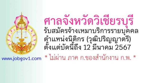 ศาลจังหวัดวิเชียรบุรี รับสมัครจ้างเหมาบริการรายบุคคล ตำแหน่งนิติกร ตั้งแต่บัดนี้ถึง 12 มีนาคม 2567