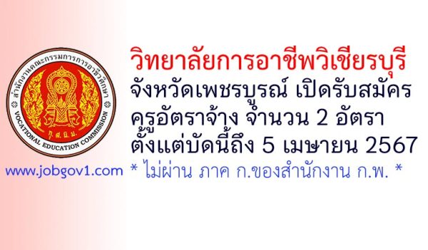 วิทยาลัยการอาชีพวิเชียรบุรี รับสมัครครูอัตราจ้าง จำนวน 2 อัตรา ตั้งแต่บัดนี้ถึง 5 เมษายน 2567