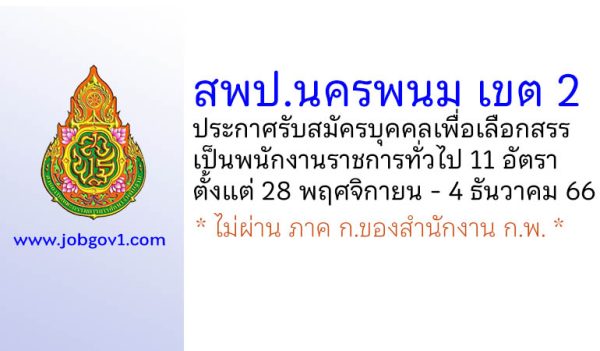 สพป.นครพนม เขต 2 รับสมัครบุคคลเพื่อเลือกสรรเป็นพนักงานราชการทั่วไป 11 อัตรา ตั้งแต่ 28 พฤศจิกายน – 4 ธันวาคม 2566