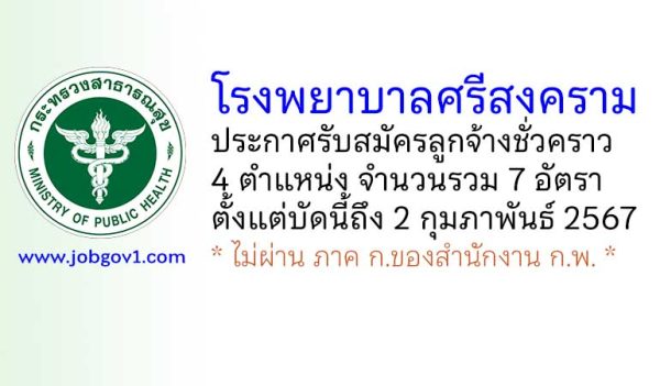 โรงพยาบาลศรีสงคราม รับสมัครลูกจ้างชั่วคราว 4 ตำแหน่ง 7 อัตรา ตั้งแต่บัดนี้ถึง 2 กุมภาพันธ์ 2567