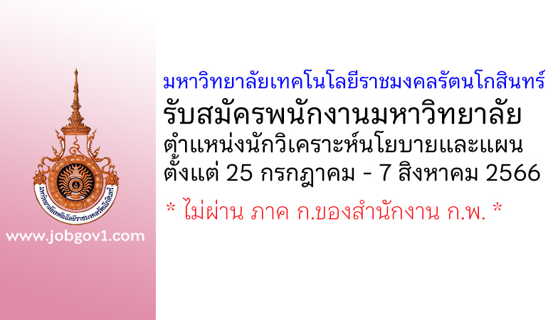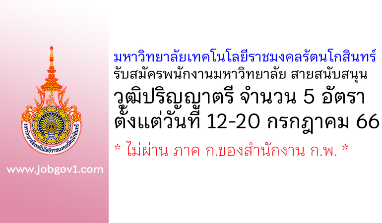 มหาวิทยาลัยเทคโนโลยีราชมงคลรัตนโกสินทร์ รับสมัครบุคคลเพื่อเลือกสรรเป็นพนักงานราชการทั่วไป 2 อัตรา ตั้งแต่วันที่ 19-25 สิงหาคม 2568