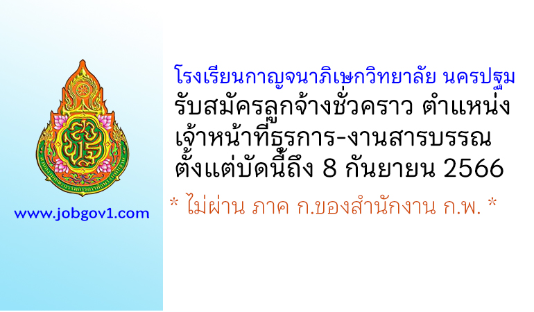 โรงเรียนกาญจนาภิเษกวิทยาลัย นครปฐม (พระตำหนักสวนกุหลาบมัธยม) รับสมัครจ้างเหมาบริการ ตำแหน่งเจ้าหน้าที่ธุรการโรงเรียน