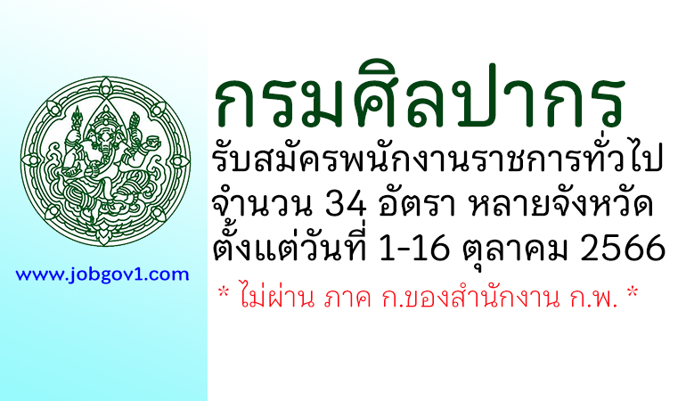กรมศิลปากร รับสมัครบุคคลเพื่อเลือกสรรเป็นพนักงานราชการทั่วไป 34 อัตรา ตั้งแต่วันที่ 1-16 ตุลาคม 2566