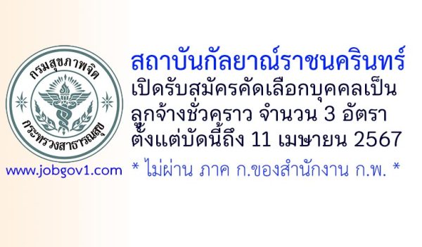 สถาบันกัลยาณ์ราชนครินทร์ รับสมัครลูกจ้างชั่วคราว 3 อัตรา ตั้งแต่บัดนี้ถึง 11 เมษายน 2567