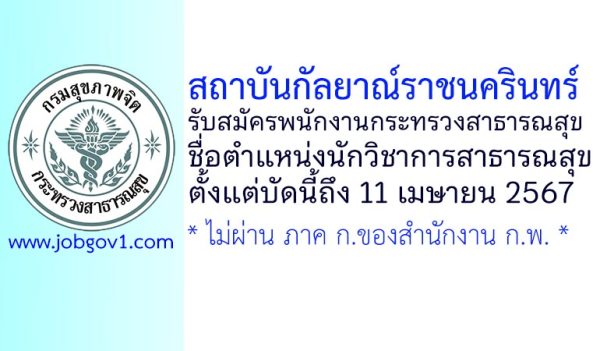 สถาบันกัลยาณ์ราชนครินทร์ รับสมัครพนักงานกระทรวงสาธารณสุขทั่วไป ตำแหน่งนักวิชาการสาธารณสุข ตั้งแต่บัดนี้ถึง 11 เมษายน 2567