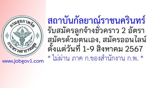 สถาบันกัลยาณ์ราชนครินทร์ รับสมัครลูกจ้างชั่วคราว 2 อัตรา ตั้งแต่วันที่ 1-9 สิงหาคม 2567
