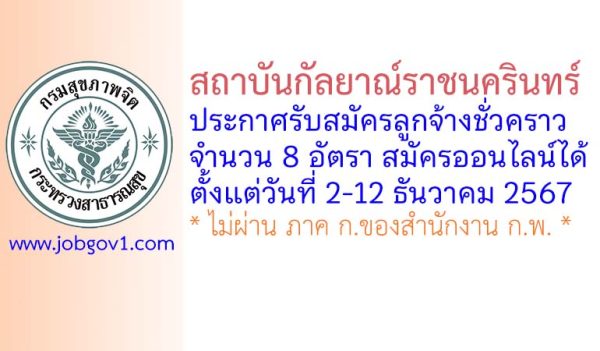 สถาบันกัลยาณ์ราชนครินทร์ รับสมัครลูกจ้างชั่วคราว 8 อัตรา ตั้งแต่วันที่ 2-12 ธันวาคม 2567