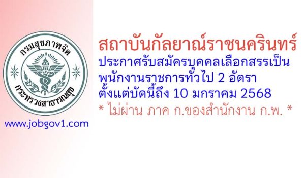 สถาบันกัลยาณ์ราชนครินทร์ รับสมัครบุคคลเลือกสรรเป็นพนักงานราชการทั่วไป 2 อัตรา ตั้งแต่บัดนี้ถึง 10 มกราคม 2568